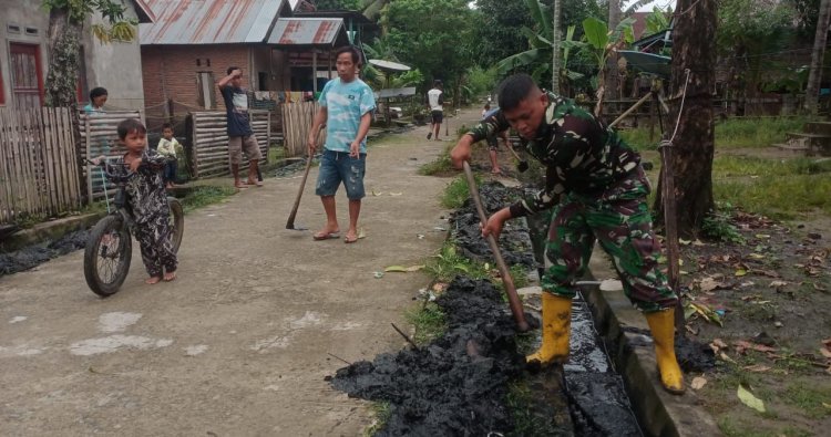 Kegiatan ini dilakukan sebagai bentuk kepedulian TNI terhadap kebersihan lingkungan dan kesehatan masyarakat. Tampak Babinsa bersama warga bergotong royong mengangkat lumpur, sampah, serta rumput liar yang menutupi saluran air di sepanjang jalan desa.