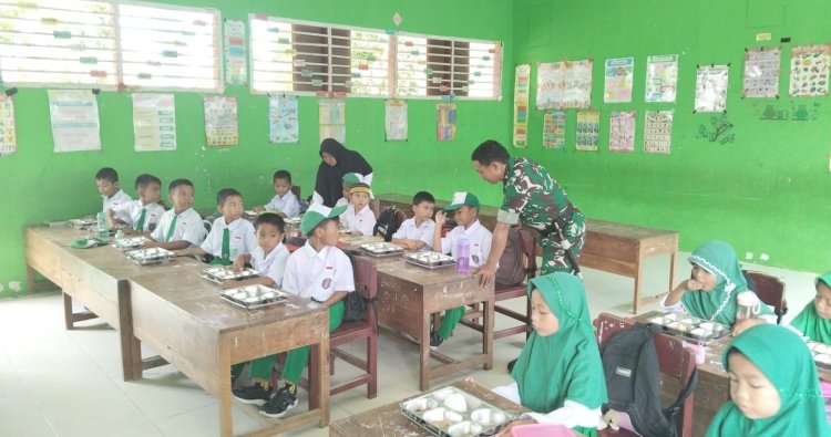 Kegiatan ini berlangsung di salah satu sekolah dasar di Desa Kuajang, Kecamatan Binuang, Kabupaten Polewali Mandar, yang menjadi salah satu lokasi penerima manfaat Program Makan Bergizi Gratis (MBG). Babinsa bersama para guru memastikan setiap siswa menerima makanan bergizi sesuai porsi dan jadwal yang telah ditentukan.