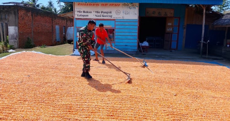 Kegiatan yang berlangsung di Dusun Tura tersebut dilakukan bersama pemilik jagung, Bapak Suardi, sebagai bentuk pendampingan Babinsa terhadap petani di wilayah binaan. Kehadiran Babinsa tidak hanya memastikan proses penjemuran berjalan lancar, tetapi juga memberikan motivasi dan dorongan semangat kepada para petani agar tetap produktif serta menjaga kualitas hasil pertanian.