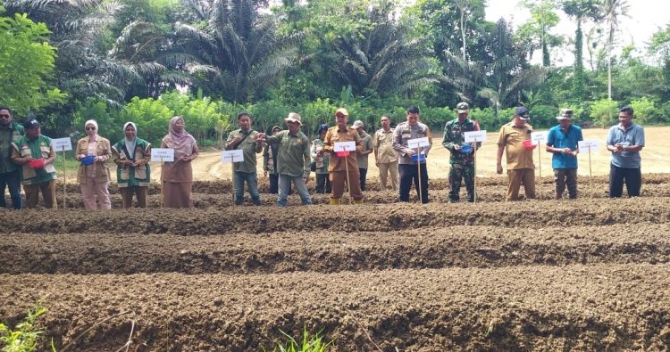Tanam serentak tersebut dihadiri perwakilan pemerintah kabupaten, perangkat daerah terkait, pemerintah desa, aparat kepolisian, penyuluh pertanian, kelompok tani, serta masyarakat setempat.