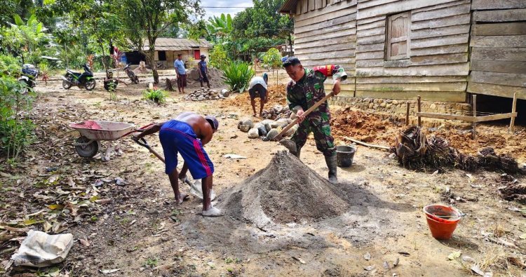 Mamuju – Wujud kepedulian TNI terhadap kondisi sosial masyarakat kembali ditunjukkan oleh Babinsa Kodim 1418/Mamuju yang bersama warga melaksanakan karya bakti pembangunan rumah salah satu warga yang sudah tidak layak huni. Kegiatan tersebut berlangsung di Desa Salutiwo, Kecamatan Bonehau, Kabupaten Mamuju, dan dilaksanakan secara gotong royong, Selasa (28/1/2026).