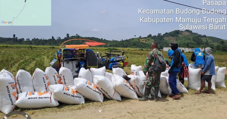Mamuju Tengah – Babinsa Kodim 1418/Mamuju terus menunjukkan komitmennya dalam pembinaan wilayah melalui pendampingan sektor pertanian. Kali ini, Babinsa memimpin langsung kegiatan panen padi seluas kurang lebih 8 hektare bersama Kelompok Tani Usaha Baru di Desa Pasapa, Kecamatan Budong-Budong, Kabupaten Mamuju Tengah. Senin (26/1/2026).