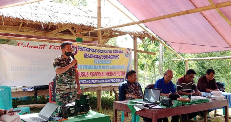 Mamasa — Pemerintah Desa Tadisi bersama Babinsa Koramil 02/Sumarorong menggelar Musyawarah Desa Khusus (Musdesus) yang membahas dukungan terhadap pengembangan Koperasi Desa Merah Putih di Desa Tadi Kecamatan Sumarorong Kabupaten Mamasa, Selasa (04/11/2025)
