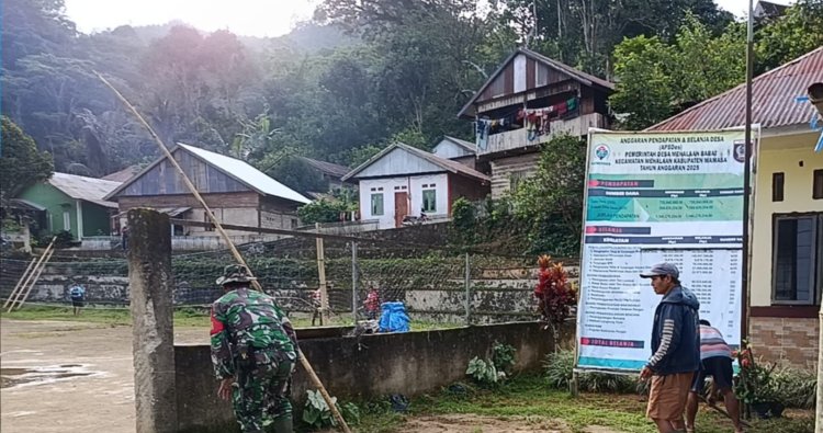 Mamasa, - Dalam rangka menjaga kebersihan dan kesehatan lingkungan Kantor Desa, Babinsa Serda Arsyad bersama Perangkat Desa dan juga staf Desa melaksanakan kerja bakti di halaman Kantor Desa Mehalaan barat Kecamatan Mehalaan Kabupaten Mamasa, Jum'at (16/01/2026)