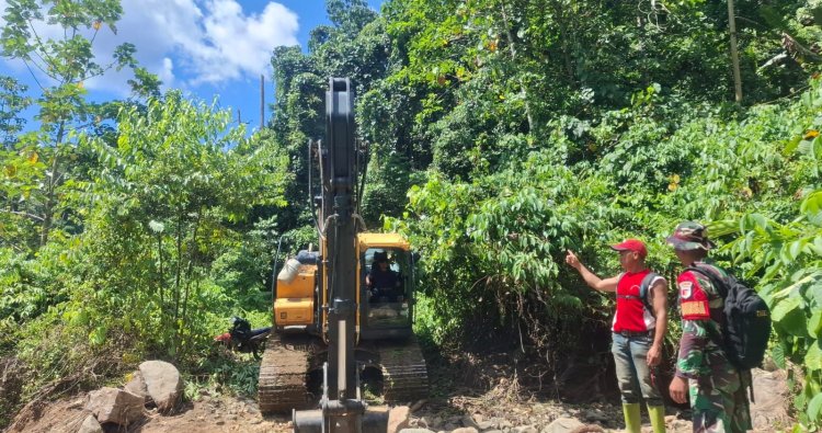 Mamuju – Kepedulian dan respons cepat kembali ditunjukkan oleh Babinsa Koramil 1418-02/Tapalang dalam membantu masyarakat menghadapi dampak bencana alam. Babinsa Koramil 1418-02/Tapalang, Praka Ansyar dan Pratu Asrang, bersama masyarakat setempat bergerak cepat melaksanakan aksi tanggap darurat dengan mengerahkan alat berat untuk membersihkan material longsoran yang menutup akses jalan penghubung Desa Bela dan Desa Kopeang, Kabupaten Mamuju. Sabtu (17/1/2026).