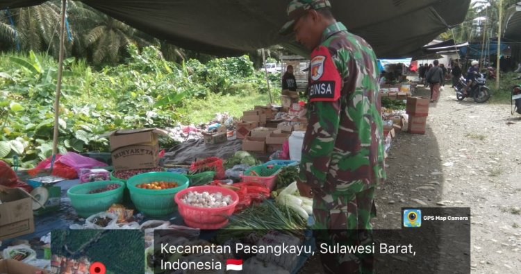 Babinsa Koramil 1427-01/Pasangkayu, Sertu Hamzah, melaksanakan pemantauan keamanan sekaligus pengecekan harga kebutuhan pokok di Pasar Tradisional Martajaya, Kelurahan Martajaya, Kecamatan Pasangkayu. Kegiatan ini merupakan upaya memastikan situasi pasar tetap kondusif dan harga sembako berada dalam kondisi stabil.