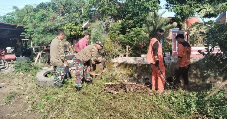 Danramil 1402-01/Polewali, Kapten Inf Ahmad Yani, di sela kegiatan mengatakan bahwa pembersihan lingkungan menjadi agenda penting setiap memasuki musim penghujan.
