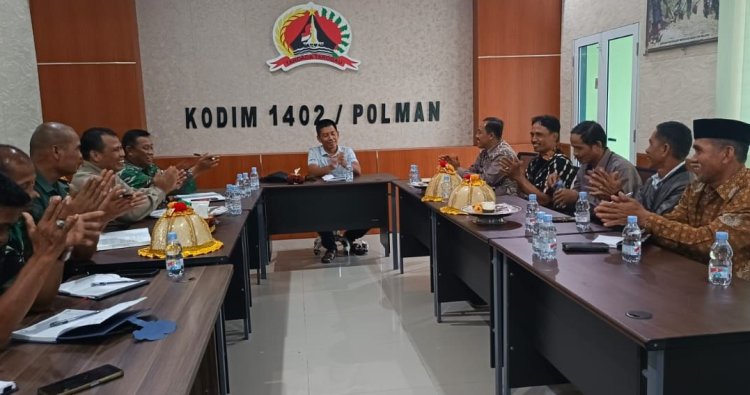 Pertemuan tersebut membahas rencana pelaksanaan TNI Manunggal Membangun Desa (TMMD) ke-127 yang direncanakan akan dilaksanakan di wilayah Kodim 1402/Polman, khususnya di Kecamatan Bulo.