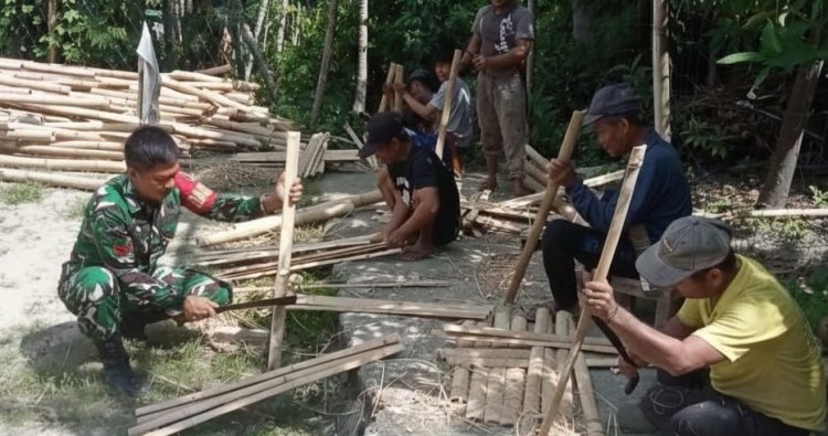 Dekat dengan Rakyat, Babinsa Kodim 1401/Majene Gotong Royong Bangun Pagar Bambu