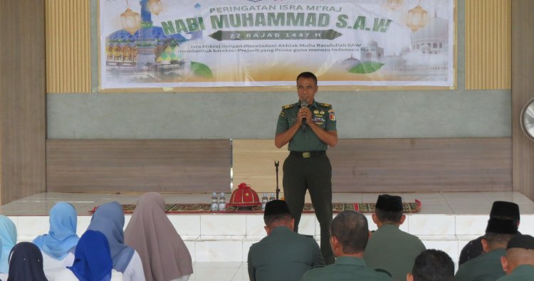 MAJENE - Kodim 1401/Majene menggelar peringatan Isra Mi'raj Nabi Muhammad SAW tahun 1447 H/2026 Masehi dengan mengusung tema "Isra Mi'raj dengan Meneladani Akhlak Mulia Rasulullah SAW Membentuk Karakter Prajurit yang Prima Guna Menuju Indonesia Maju". Kegiatan ini berlangsung khidmat di Aula Makodim 1401/Majene, Kelurahan Lembang, Kecamatan Banggae Timur, Kabupaten Majene, Kamis (22/1/2026).
