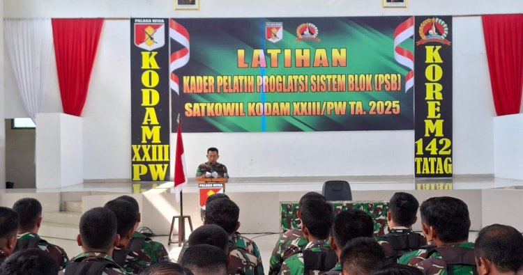 Mamuju – Kasrem 142/Tatag Kolonel Inf Abd. Rahman secara resmi menutup kegiatan Latihan Kader Pelatih Proglatsi Sistem Blok (PSB) Satkowil Kodam XXIII/Palaka Wira yang bertempat di Aula Andi Depu Makorem 142/Tatag, Mamuju, Sulawesi Barat, pada Minggu (07/12/2025).