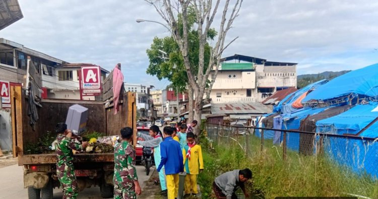 Mamasa, - Babinsa Koramil 1428-01/Mamasa Kodim 1428/Mamasa bersama masyarakat melaksanakan gotong royong membersihkan saluran air di Kelurahan Mamasa Kecamatan Mamasa Kabupaten Mamasa, Senin (03/11/2025).