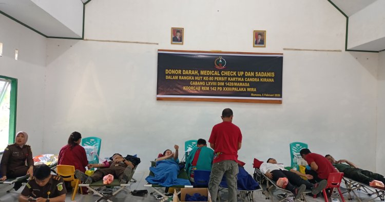 Mamasa, - Aksi donor darah digelar jelang perayaan HUT Persit Kartika Chandra Kirana ke-80. Di mana puluhan orang dari berbagai instansi turut mendaftar untuk menyumbangkan darah pada kegiatan tersebut di Makodim 1428/Mamasa Kelurahan Mamasa Kecamatan Mamasa Kabupaten Mamasa, Senin (02/02/2026)