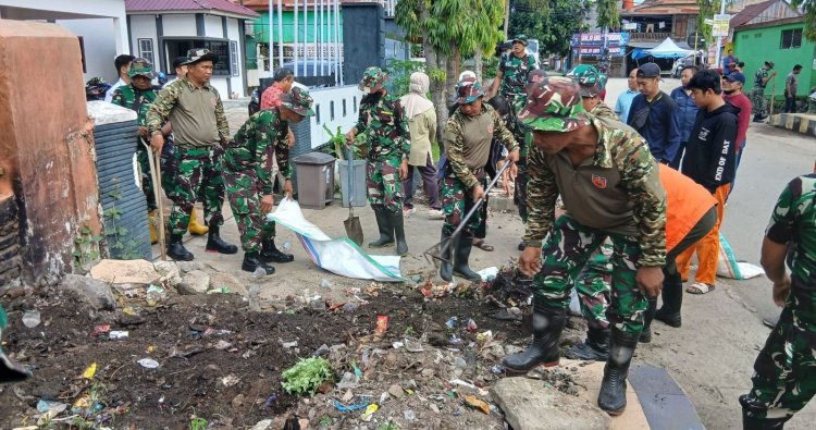 Polewali Mandar – Sejumlah personel Koramil 1402-01/Polewali bersama masyarakat melaksanakan kerja bakti pembersihan lingkungan dan saluran drainase di Kelurahan Pekkabata, Kecamatan Polewali, Kabupaten Polewali Mandar, Jumat (23/1/2026).