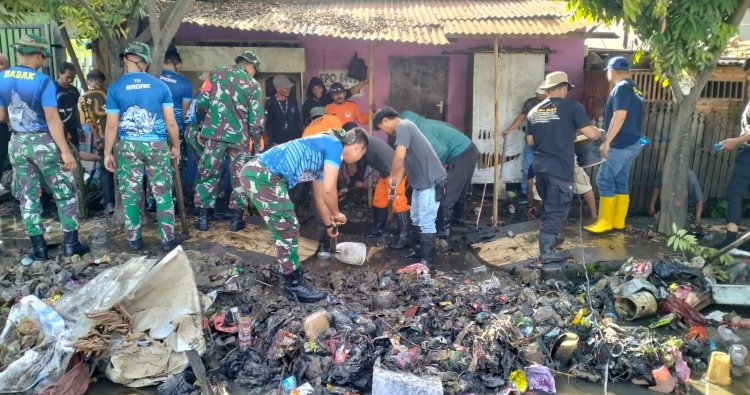 Selain membersihkan tumpukan sampah di saluran drainase, para personel TNI dan warga juga memperbaiki aliran air yang tersumbat. Sementara petugas DLHK membantu mengangkut sampah yang telah dikumpulkan menggunakan armada kebersihan.