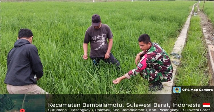 Pasangkayu – Komitmen TNI AD dalam mendukung program nasional swasembada pangan terus diwujudkan hingga ke tingkat desa. Hal tersebut tampak dalam keterlibatan langsung Babinsa Koramil 1427-02/Bambalamotu, Sertu Amiruddin, yang turun ke sawah mendampingi petani memantau perkembangan tanaman padi di Desa Pangiang, Kecamatan Bambalamotu, Kabupaten Pasangkayu, Sabtu, 3 Januari 2026.